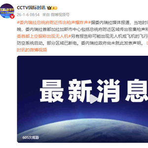 [委内瑞拉总统府附近传出枪声爆炸声]据委内瑞拉媒体报道,当地时间1月5日晚,委内瑞拉首都加拉加斯市中心包括总统府附近区域传出密集枪声和爆炸声。另有报告称可能出现无人机或飞机的飞行声响,引发防空系统启动。部分区域已断电。委内瑞拉政府尚未就此发表声明。