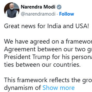 “这对印度和美国来说都是好消息!”莫迪在社交媒体X平台回应表示,这一框架加强了“印度制造”计划,将创造大量就业机会。他特别感谢特朗普总统对加强两国关系的“个人承诺”。