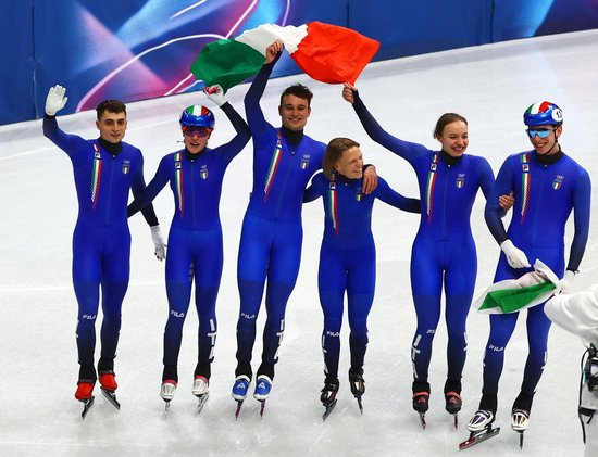 直播吧02月10日讯 米兰冬奥会短道速滑男女混合团体接力决赛A,东道主意大利队夺得金牌,队内35岁老将方塔娜夺得个人第3枚奥运金牌,第12枚奥运奖牌!