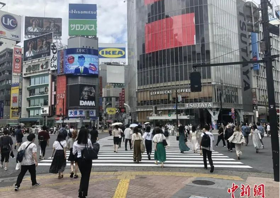 资料图:日本民众穿过涩谷车站前的交叉路口。中新社记者 吕少威 摄