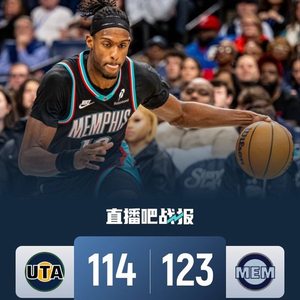 开场后两队节奏打得飞快但是命中率都不是很高,科利尔频频拿分帮助爵士取得微弱领先,灰熊多次追平比分但始终未能完成反超。第二节上来虽然灰熊外线三分手感不错,但整体效率一般,爵士多点开花反而将分差拉大到两位数,乐福左右开弓连中三分,半场过后爵士领先12分。易边再战,爵士连续上演暴扣打得十分有气势,不过灰熊通过连续冲击内线找回节奏,爵士命中率也开始下降,场上分差被逐渐缩小,期间李凯尔还打成一次3+1。末节灰熊上来一波15-4的高潮直接反超并建立起两位数优势,最后时刻贝利连续拿分一度将分差追到个位数也还是无力回天,最终灰熊123-114逆转爵士结束4连败,爵士遭遇2连败。