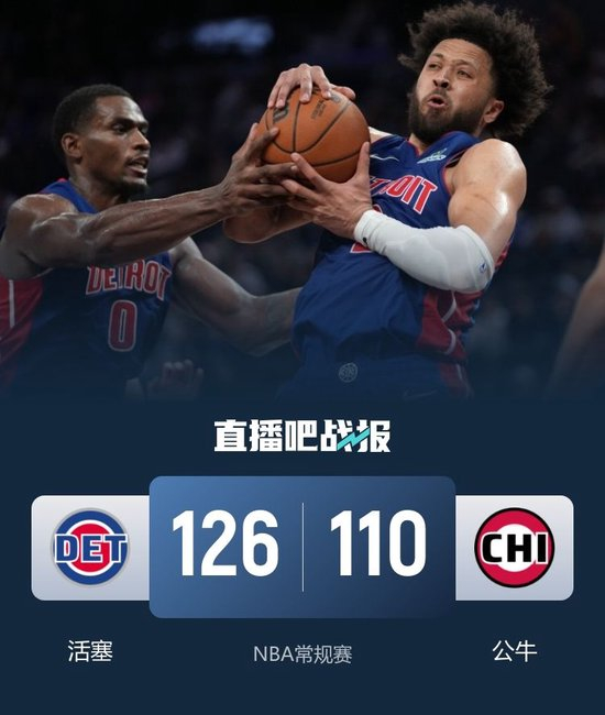 活塞大胜送公牛8连败 杜伦26+13 坎宁安18+9+13 吉迪27+6