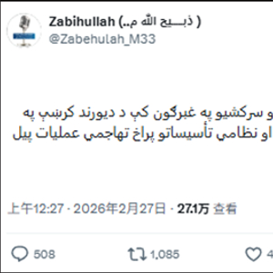 阿富汗政府发言人穆贾希德27日凌晨在社交媒体上证实,阿富汗首都喀布尔、坎大哈省和帕克蒂亚省部分地区遭到巴基斯坦军队空袭,目前尚无人员伤亡报告。他在X平台上写道:“针对巴基斯坦军方反复的挑衅与侵犯,我们已对杜兰德线沿线的巴基斯坦军事阵地和设施发起了大规模进攻行动。”