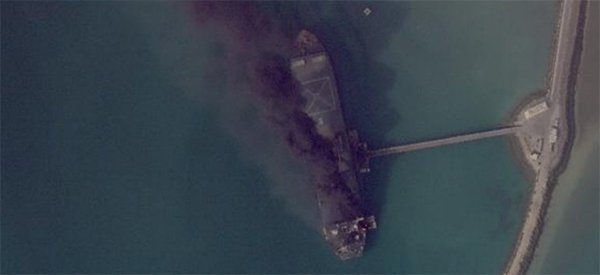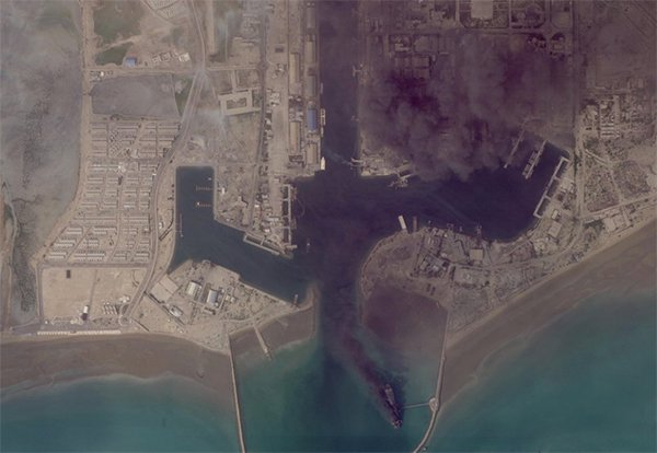 商业卫星图像显示,位于科纳拉克海军基地的军港码头升起烟雾,该舰当时正停泊于此。据报道,“贾马兰”级舰艇构成伊朗水面舰队的核心力量,在此次损失前仅完成建造6艘。