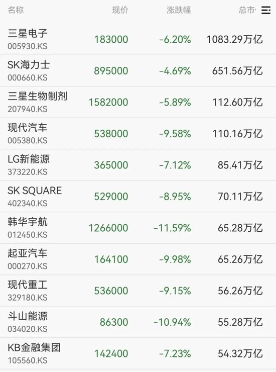 权重股方面,三星电子、SK海力士、现代汽车、韩华宇航等纷纷走低。