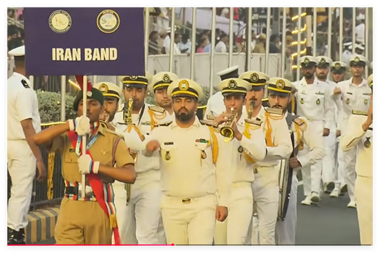 在一段来自今年“米兰”联合演习的视频中,还可以看到伊朗海军的一个军乐团,出现在演习活动的阅兵环节,跟在印尼方阵后面。