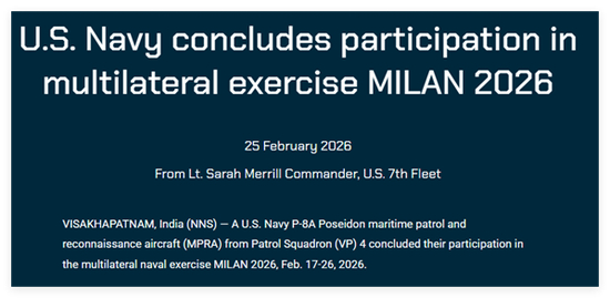 对此,耿直哥检索发现,在今年以及2024年这两次有伊朗“德纳”号参加的“米兰”演习中,美军确实都有派人参加。从美国海军和印度海军发布的相关消息来看,今年美军派往印度参加活动的是一架P-8A反潜巡逻机,2024年时则是“哈尔西”号导弹驱逐舰。