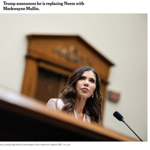 △《纽约时报》报道,特朗普总统宣布解除诺姆国土安全部长的职务