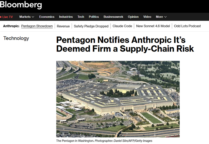 据彭博社3月6日报道,美国国防部已正式通知美国人工智能企业安特罗匹克(Anthropic)公司,将该公司及其人工智能模型克劳德(Claude)指定为“供应链风险”。这一标签通常用于针对外国对手企业,而安特罗匹克(Anthropic)成为首家被列入该名单的美国科技公司。