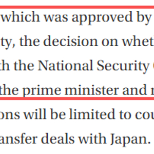 - 现在日本国内的和平力量,包括在野党、民间的和平团体与普通民众,虽然有不少人是反对放宽武器装备出口限制的,但是这一群体总体上比较分散,缺乏制度化的制衡渠道。同时,执政联盟在国会占据了绝对多数席位,相关修改可以回避在野党的反对和制衡。