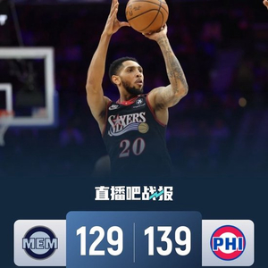 上半场,灰熊反客为主,打出13-2的攻击波取得两位数优势,此后76人展开反击,格莱姆斯打成2+1帮助球队完成12-0的攻势扳平比分,次节双方继续对攻,佩恩外线开火独中4记三分,吕佩尔高效输出予以回应,半场战罢灰熊71-68领先76人。下半场,76人命中率下降,灰熊持续发力将分差拉开到两位数,末节灰熊突然哑火,76人轰出21-2进攻狂潮,佩恩连续三分创生涯新高,最终,76人139-129击退灰熊,主场过关。