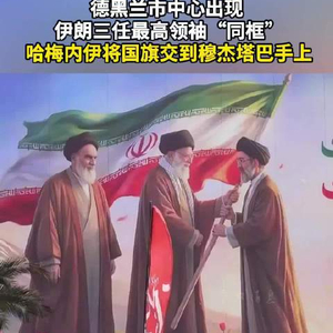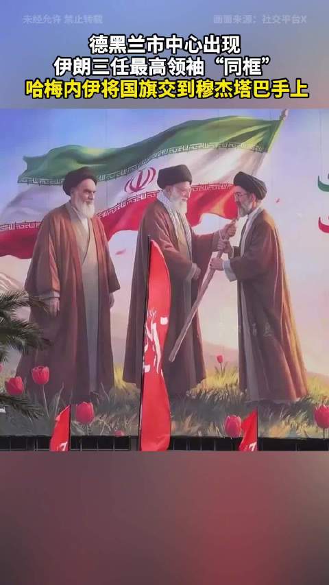 德黑兰市中心出现伊朗三任最高领袖“同框” 哈梅内伊将国旗交到穆杰塔巴手上