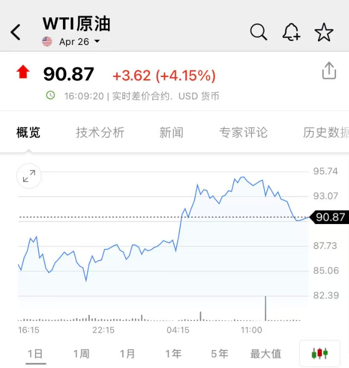 不过,3月12日国际油价不降反升。布伦特原油一度大涨10%,重回100美元上方。截至发稿,布伦特原油涨幅收窄至4.67%,每桶报96.28美元;WTI原油涨4.15%,每桶报90.87美元。