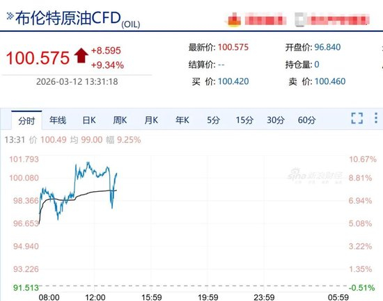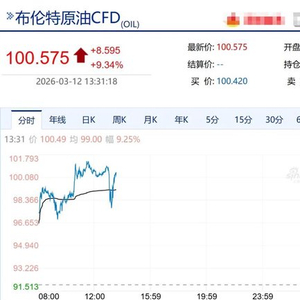 据今天消息,12日亚洲交易时段,国际油价延续前一天的涨势、继续走高。布伦特油价一度突破每桶100美元。
