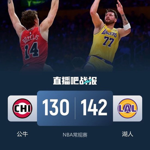 首节对决湖人状态高开低走,他们前4分钟就取得14-4的领先,但之后的8分钟里仅得12分导致优势直接被蚕食并被抹平分差;次节公牛再接再厉一度取得7分领先,在这之后湖人才找回感觉以一波24-12的攻势扭转战局,东契奇半场砍下24+8,湖人4人得分上双反超5分进入下半场。休息归来湖人开局再送28-12的攻势一度拉开22分的领先优势,但这之后公牛突然回暖半节时间回敬27-15的攻势重新追至10分燃起希望,不过末节湖人没有给对手机会,他们迅速拉开15分左右的领先保持到最后。最终,湖人主场轻取公牛收下比赛。