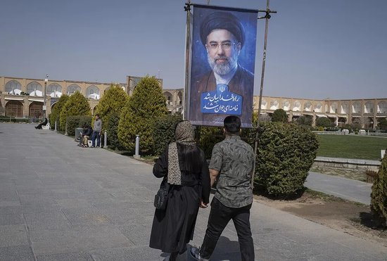 当地时间2026年3月11日,伊朗伊斯法罕,当地民众走过新任最高领袖穆杰塔巴·哈梅内伊的肖像。图/视觉中国