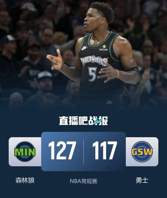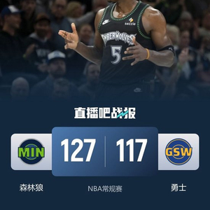森林狼(41-26):爱德华兹42分8板5助、戈贝尔18分9板2助、麦克丹尼尔斯15分1板2助、道苏姆12分8板7助、里德12分3板4助、海兰德11分1板1助、兰德尔10分4板1助、迪文岑佐7分6板1助、李凯尔5板2助