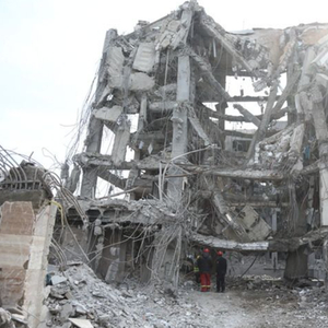 3月12日,在伊朗首都德黑兰,救援人员在受损建筑前工作。图源:新华社