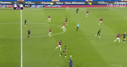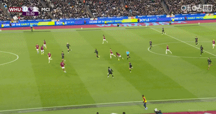 上半场伤停补时2分钟,半场结束,曼城暂1-1西汉姆联。