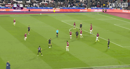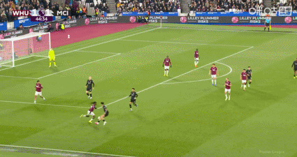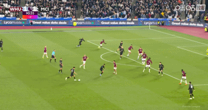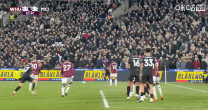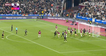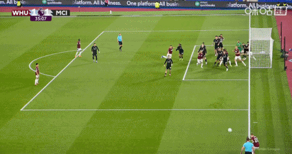 第35分钟,西汉姆联右侧角球机会,鲍文将球送到门前,多纳鲁马出击没有碰到,马夫罗帕诺斯头球攻门,这球击中横梁下沿进入球门,西汉姆联1-1曼城。↓