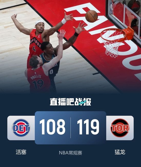 上半场,猛龙利用主场优势率先发力,打出13-5的开局,活塞不断冲击内线拿分追赶,坎宁安飙中压哨三分,次节活塞持续发力,坎宁安得分助攻一肩挑,巴恩斯连投带罚追赶,半场战罢活塞64-59领先猛龙。下半场,活塞突然哑火,猛龙大举反击,单节34-17净胜17分获得两位数优势,末节活塞奋力追赶,英格拉姆连续拿分杀死比赛。最终,猛龙119-108击退活塞,主场过关。