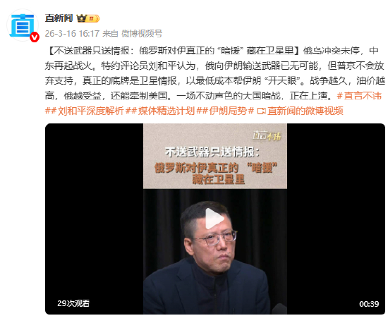 [不送武器只送情报:俄罗斯对伊真正的 “暗援” 藏在卫星里]俄乌冲突未停,中东再起战火。特约评论员刘和平认为,俄向伊朗输送武器已无可能,但普京不会放弃支持,真正的底牌是卫星情报,以最低成本帮伊朗 “开天眼”。战争越久,油价越高,俄越受益,还能牵制美国。一场不动声色的大国暗战,正在上演。#直言不讳##刘和平深度解析##媒体精选计划##伊朗局势#