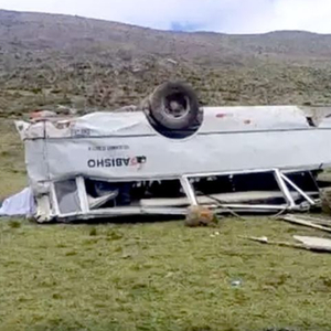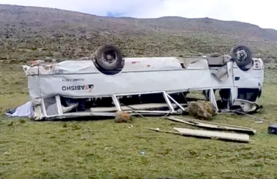 当地时间22日,秘鲁利马大区发生一起严重交通事故,一辆巴士在通往拉洪泰雪山的山路上行驶时失控冲出路面,坠入约80米深的山谷。