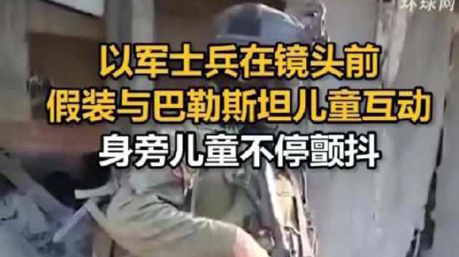 [环球网:以军士兵摆拍和巴勒斯坦儿童互动]环球网援引今日俄罗斯4月11日报道,日前,在全网关注数起巴勒斯坦幼小孩童遭以军枪杀的事件之际,一段疑似由以色列方面拍摄的视频显示,一名以军士兵在镜头前假装和一名光着脚丫的巴勒斯坦儿童互动,而孩子却在他身边不停颤抖。