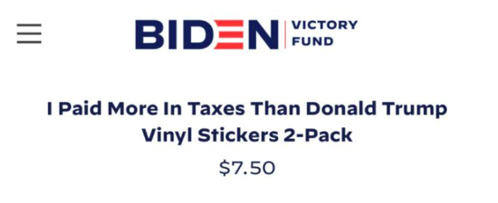 在辩论开始前几个小时,拜登抓住了这份报告, 不仅光速上架“我交的税比特朗普多”的周边贴纸,