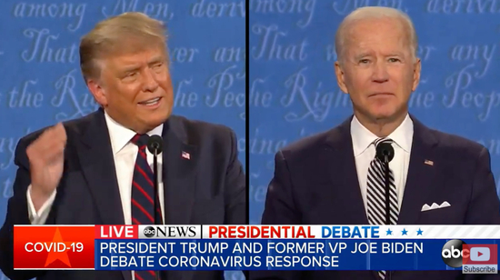美国总统特朗普和民主党总统候选人拜登的2020年总统大选首场辩论