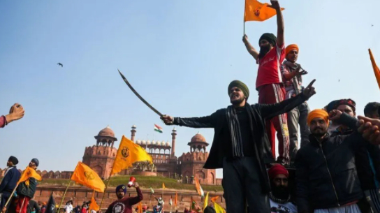 2021年1月,抗议农民闯入警察的路障,袭击了德里的红堡建筑群