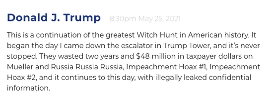 特朗普的回应大家应该都猜得到了:“这是美国历史上最大的政治迫害的延续。”