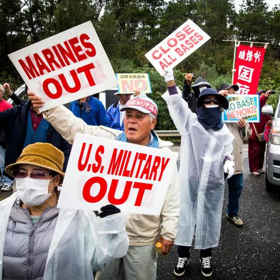 ▲ 日本冲绳居民举行游行示威,要求美军关闭驻日军事基地。