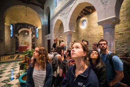 一群选修了 " 生命的意义 " 课程的学生在导师的带领下,到一所修道院了解宗教文化与习俗(图片来源:麻省理工新闻)