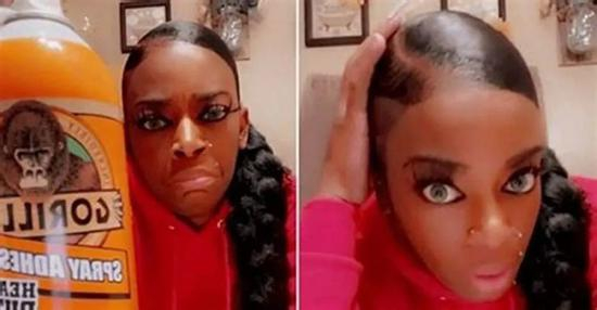 今年2月的时候,一位名叫泰西卡·布朗(TessicaBrown)的女孩在Tiktok上传了一则视频。一个月前她突发奇想,用一款“大猩猩胶水”代替她平时用的发胶抹在了头发上。泰西卡之所以这么做,是因为她实在受不了每天花那么多时间在头发上了!她只希望“大猩猩胶水”能让她的发型多维持几天。