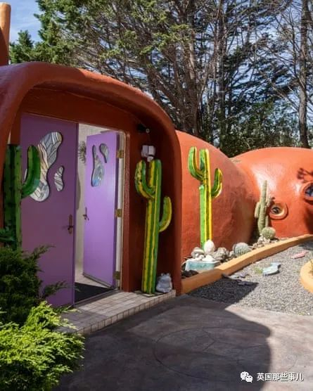 它整体呈深橙色,但房子中央,还有一个抢眼的紫色圆顶,