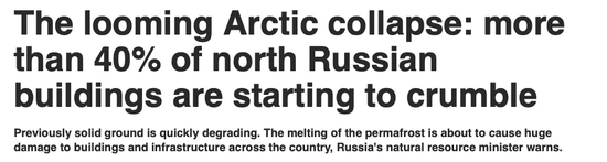 俄罗斯北方目前40%的建筑物目前正在经历建筑结构变形,而当地23%的城市技术系统故障根本原因都是永冻土融化变形引起,而多达29%的石油天然气生产设施已经无法再运行。