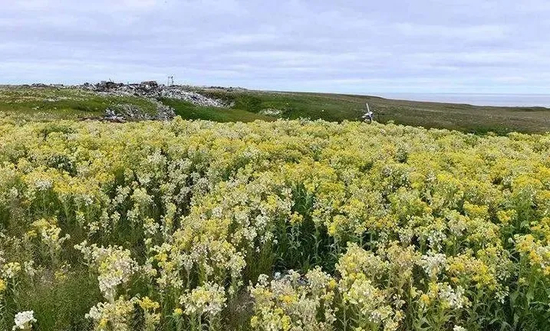 由于北极地区主要靠透明不吸收光的冰盖保持凉爽和寒冷天气,近年来越来越明显的气候变暖加速了这些冰域的融化,很多原本被冰层覆盖的地方逐渐在温暖气候中露出“真实面目”,而人类也是史无前例地见证了这些过去永久冰封的地区,居然——开出了漫山遍野的鲜花…