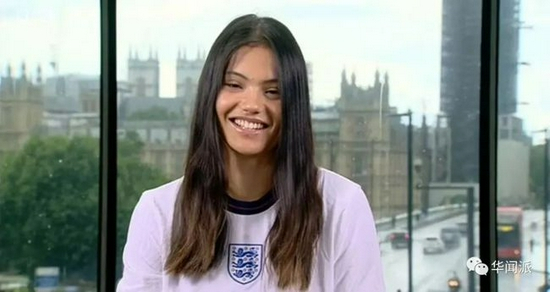 而以英国历史上第二年轻网球手身份闯入温网16强的18岁华裔混血女孩艾玛·拉杜卡努(华闻君写了一篇关于她的文章:),昨天也身穿英格兰球衣接受了BBC的采访。