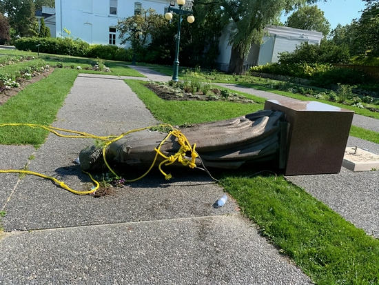 但人们的愤怒并没有随之熄灭——不久,现任伊丽莎白二世女王的雕像,也被人们用同样的方式推翻。