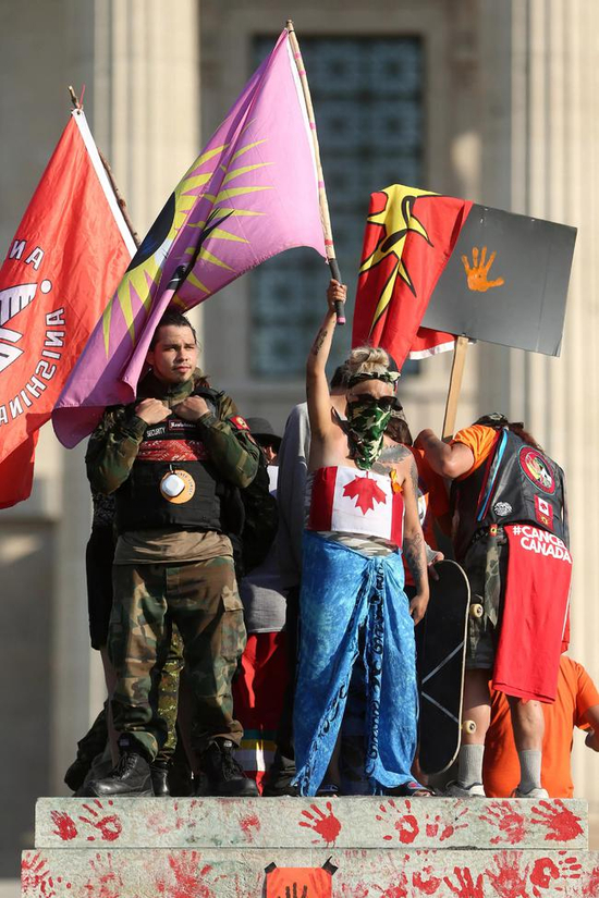 这一天是加拿大国庆日,但他们聚集于此处却并非为了庆祝,而是愤怒的抗议。