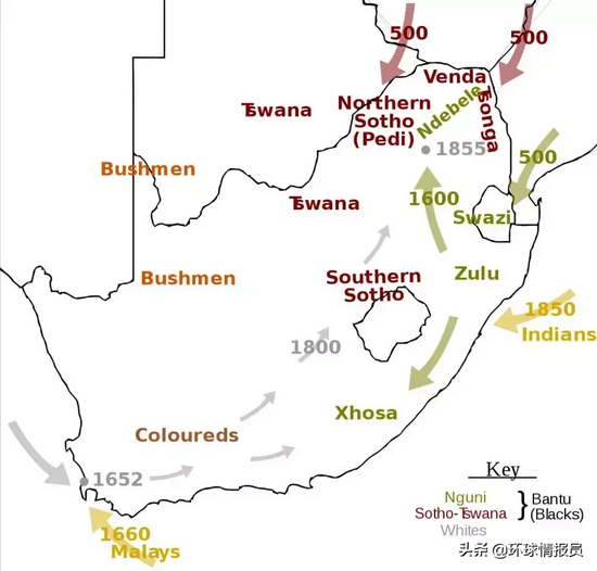 ▲来自世界各地的人口迁入南非,便形成了今日的“彩虹之国”