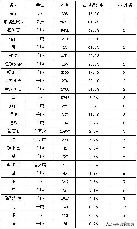 ▲南非主要的矿产储备量。丰富的矿产是支撑南非经济的强大基础