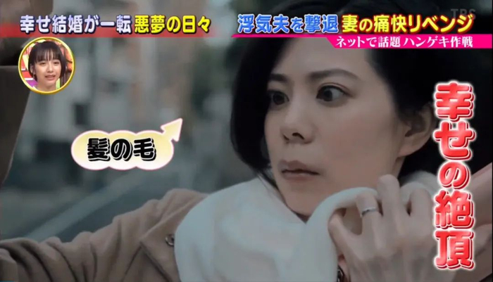 在抓老公出轨这件事上,女人真的堪称福尔摩斯。发现导航上的地址都被删除了,早苗就拿胶带粘了一下车座椅,果然粘到了和之前围巾上长度差不多的头发。