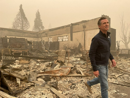 加州州长纽森在灾后的格林威尔。(图片来自纽森社交媒体)