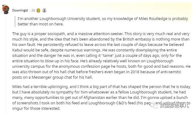 他在拉夫堡大学的匿名忏悔页面很出名,算是毁誉参半吧。