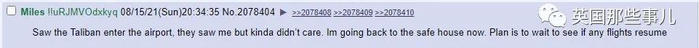 “我看到塔利班的人进入了机场,他们看到了我,但也没管我。我现在要回到安全屋,计划是等一等,看看有没有航班恢复。”