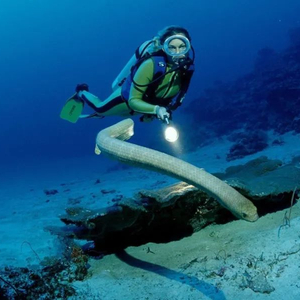 当它们看到潜水员后,会飞快地靠近,用身体紧紧地缠绕他们,有时会咬人。