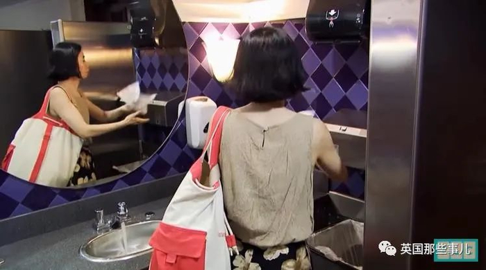 Kate在外面的公共卫生间上完厕所,把手洗干净,