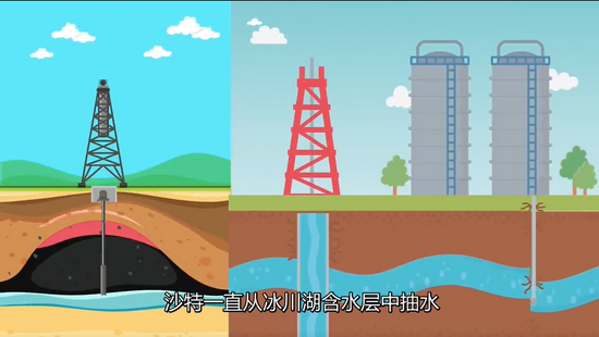 在大约1万年前,沙特还被起伏的草原、森林、丛林覆盖,这里的气候曾像东南亚的热带地区一样,温暖湿润。冰川时代积累起来的古地下水就被密封在沙特地下一公里深的蓄水层中,测算估计,整个沙特的地下含水层,大约储有5000多亿立方米的淡水资源,相当于17个丹江口水库。这也为该国最初的农业发展提供了丰富的水源。